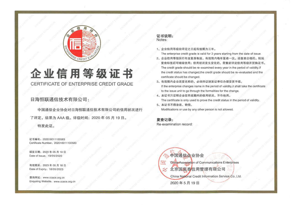 通信行業(yè)信用等級3A證書